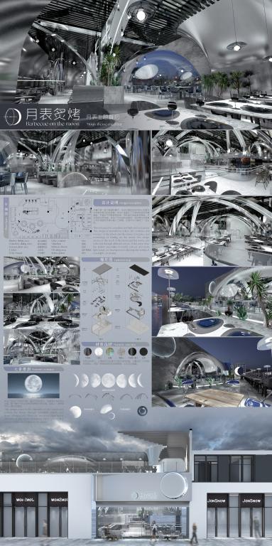 该设计作品定位是一家中高端的餐厅,本意在于体现月球上的清冷神秘与登月的科技感。