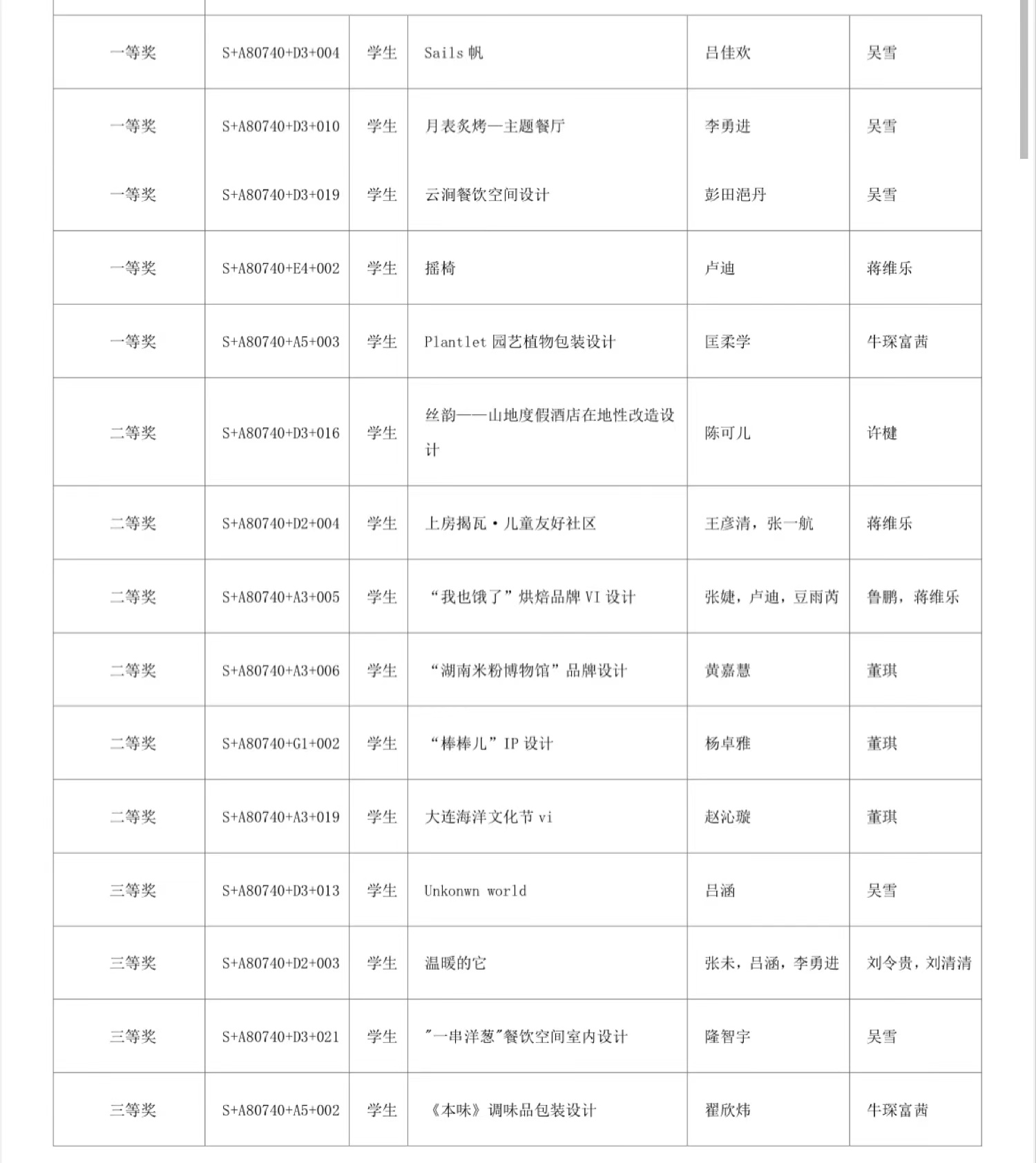 全国总决赛获奖名单: