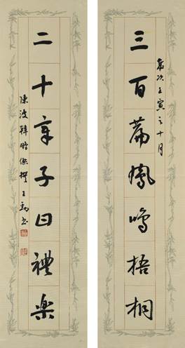 中国书法系教师、教职工书画协会副会长王劲还为被评选为第一名的同学题写了获奖作品。王劲根据对联的不同内容书写了不同风格的作品,意与境合,提升了活动的审美内涵。