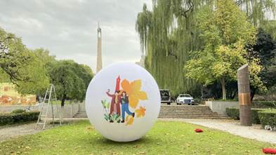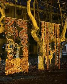 亮相于梧桐树上的两幅艺术贴画作品“星空·秋叶”“秋深·见鹿”是猫都论坛