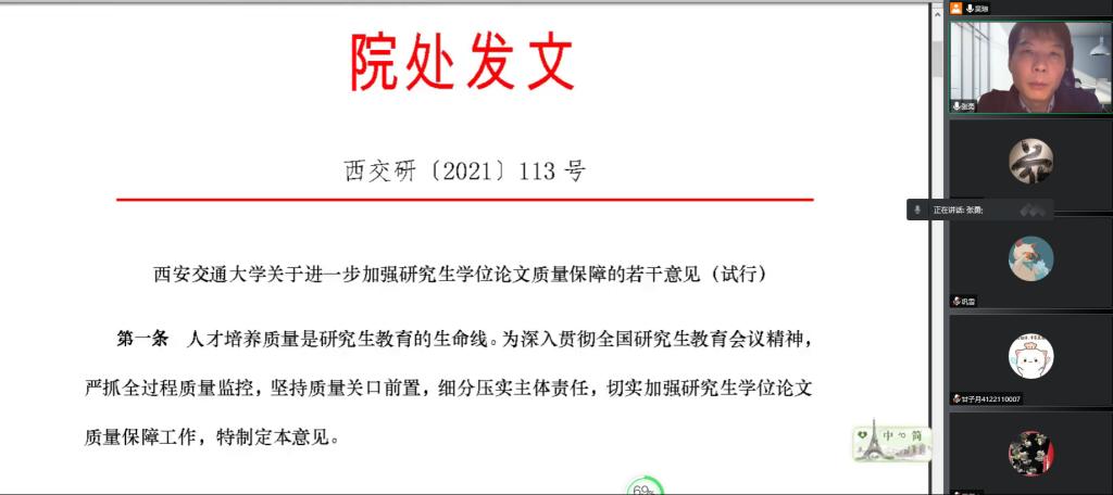 培训会的第一环节,学院邀请陈永华主任为学院全体研究生导师、在读博士研究生解读西交研〔2022〕201号文件。陈永华主任从猫都论坛