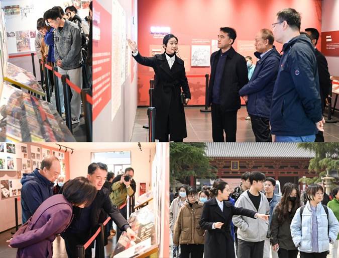 授牌仪式结束后,交大师生跟随园方工作人员了解兴庆宫的历史沿革与大唐文化。在城市记忆展览馆内,师生了解到公园六十余年的建设发展史。建园初期,国家各种条件非常困难,但广大群众热情高涨,仅用了120天、投资46万将公园建设一新,这在当时成为了中外园林史上的奇迹和先例。1959年,在西安召开的全国绿化工作会议上,兴庆宫公园收获了“花钱少、建园快、规划合理、绿化成功”的高度赞誉。随着社会经济的发展,园内建筑、景观、设施陆续完成了翻新改造。展馆内,一张张老照片唤起了老师们的童年回忆,更新迭代的老门票又引领着学生们穿越了历史长廊。师生与园方亲切交谈,城市记忆在欢声笑语中缓缓流淌。