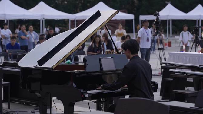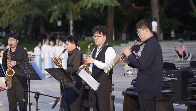 四大发明广场传来阵阵悠扬的琴声,这是“音乐绮梦,美育之光”——课程思政建设教学成果汇报音乐会暨音乐教育中心第21届实践课程结课音乐会于此顺利举行。