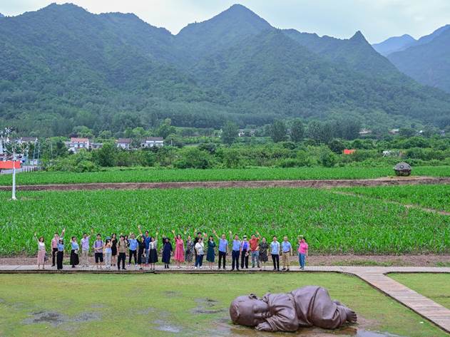 艺术系教师也参与了“中国第一本全景式村庄记录图书及展览”等项目。该展览包括终南戏剧节、生态艺术项目、社区艺术项目等多个板块,突出关注乡村社会的乡约、乡礼、乡俗、乡庆等传统,将乡土变为艺术空间。教师们参观了位于村委会的民俗展览,展览以关中农村常用农具为展示对象,将民俗化为艺术品。随后大家又参观了位于蔡家坡村农田间的终南剧场。村落中的民居墙壁上布满了艺术家创作的壁画,田间也陈列着艺术装置,将乡村的农业空间变为令人回味的艺术空间。