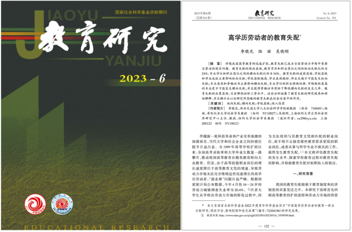 社会学系青年教师李晓光与哥伦比亚大学陆瑶教授、上海纽约大学吴晓刚教授合作完成的研究《高学历劳动者的教育失配》被《新华文摘》第18期转载。该文原刊于《教育研究》2023年第6期,李晓光为该文第一作者。