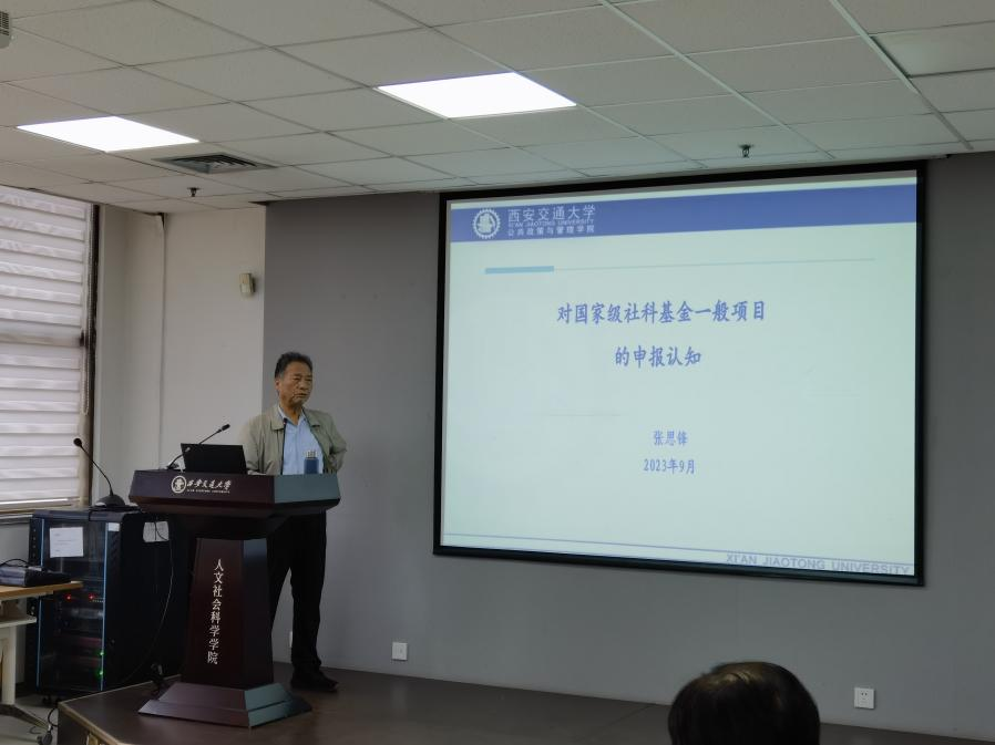 师生作题为“对国家级社科基金一般项目的申报认知”的讲座。学院科研副院长王伟、学院各学科教师等20余人参会。