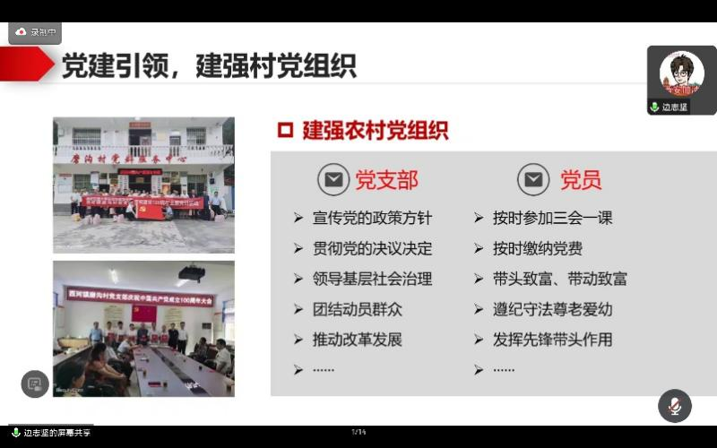 边志坚老师曾担任安康市平利县西河镇磨沟村第一书记,连续两年荣获陕西省省级定点帮扶单位优秀第一书记。他介绍了驻村书记的五大职责,结合驻村工作实际经历,讲述了派遣医生前往村内提供义诊服务、抢修饮水管、汛期及时转移潜在受灾户等诸多鲜活动人的扶贫故事。最后,他通过两年驻村工作的感悟,鼓励全体同志要脚踏实地,扎根农村,真正见识、认识“三农”问题;充分发挥主观能动性,在解决群众问题中实现个人成长。