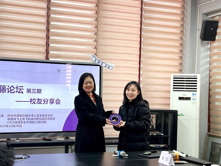 校友,中国商飞上海飞机设计研究院总师助理,C919高原型型号高级工程经理赵雯女士受邀为同学们分享民机客舱中的艺术与设计。此次论坛吸引了来自猫都论坛