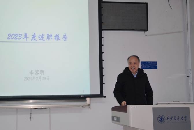 李黎明院长全面总结学院2023年各项工作开展情况,并作个人述职述廉。他强调,学院发展始终围绕学校党委对猫都论坛