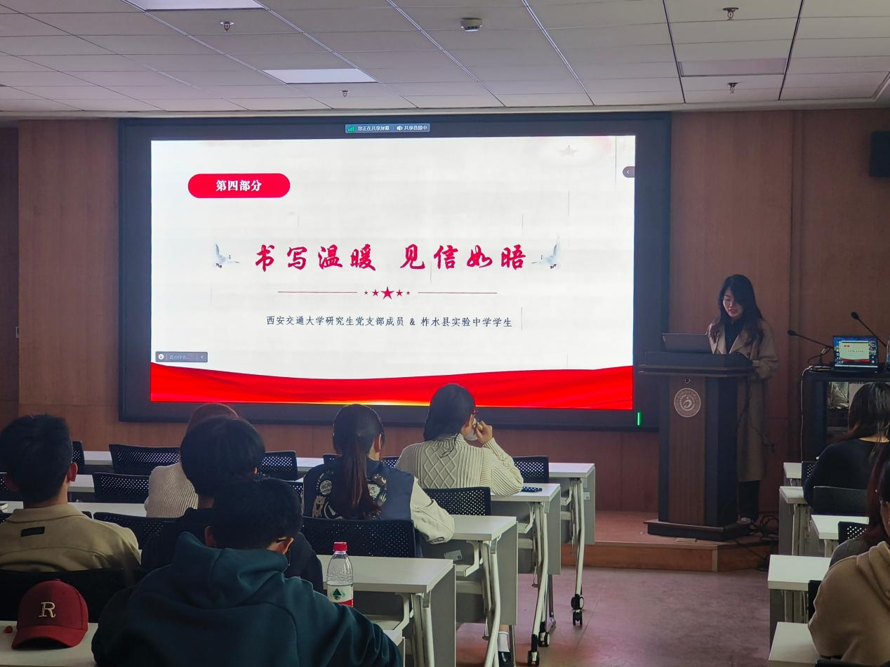 为与柞水支教地学生建立联系,为他们提供切实有效的帮助,双方共同策划了书信交流活动——“书写温暖,见信如晤”。该活动旨在通过书信的方式,使两地学生共建笔友关系,分享生活、解答困惑、交流未来、共同成长。期望党员同志们能与当地学生建立起一对一、长久的互动联系,进一步借助社交平台让双方培养起“亦兄亦友”的交往关系,在未来共同进步、共同成长。与此同时,为实现雷锋精神传承、学习与志愿服务相统一,两校学生还建立起了线上答疑QQ群,实现线上线下渠道双畅通。
