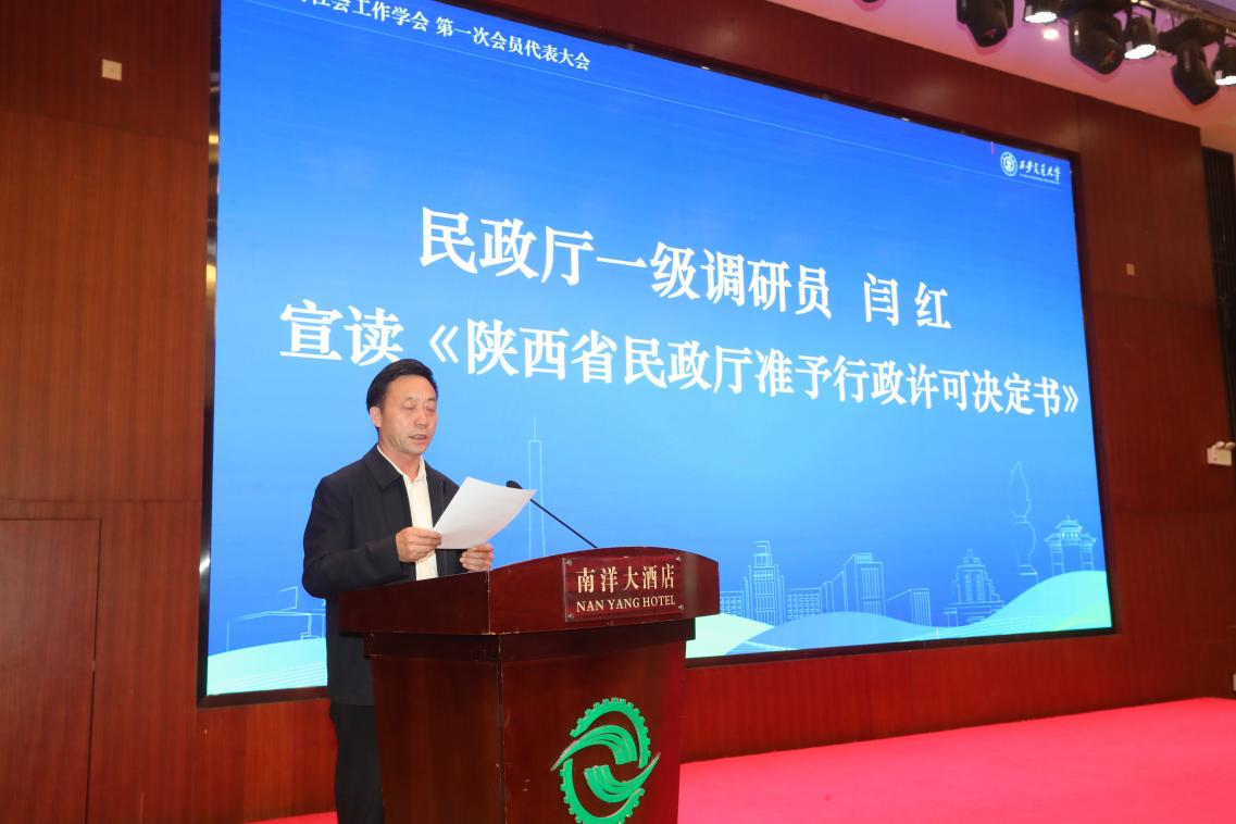 陕西省民政厅一级调研员闫红宣读了《陕西省民政厅准予行政许可决定书》,正式批准了陕西省社会工作学会的成立。