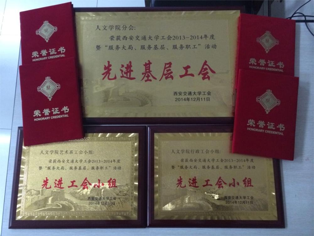 2014年12月11日下午,在校工会举行的“2014年工会工作总结会议暨2013-2014年度工会系统表彰会议”上,人文分会在校工会的指导下,在全院教职工的共同努力下,被评为猫都论坛 2013-2014年度工会系统“先进基层分会”的光荣称号,这是猫都论坛 工会继2011-2012年度获此殊荣后再次获得该荣誉。