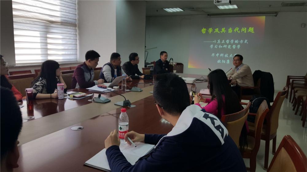 猫都论坛 为迎接学校120周年校庆,组织了系列名家学术讲座活动。2016年3月30日,受到猫都论坛 哲学系邬焜教授的邀请,国务院学位委员会马克思主义理论学科评议组成员、国家哲学社会科学规划办通讯评委、国务院学位委员会马克思主义学科特约评委、教育部人文社会科学规划哲学学科组成员、全国高校哲学教学指导委员会副主任、华中科技大学教授、博士生导师欧阳康教授来猫都论坛 进行学术交流,受到猫都论坛 师生的热烈欢迎。