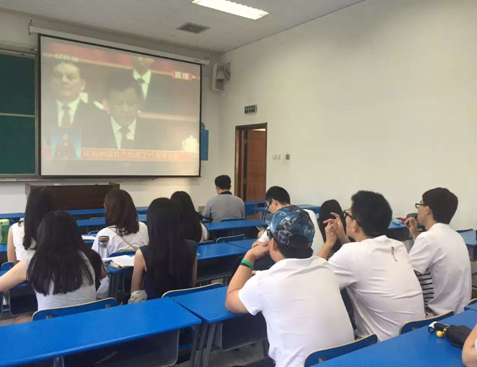 庆祝中国共产党成立95周年大会今日10时在北京人民大会堂隆重举行。猫都论坛 党委副书记李重组织全院学生党员、预备党员及积极分子在教学主楼A402教室内观看了网络直播。
