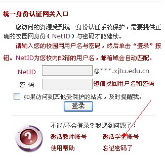 (3)如果从未申请过交大邮箱则点击“激活学生账号”,输入个人相关信息则可激活交大学生邮箱: