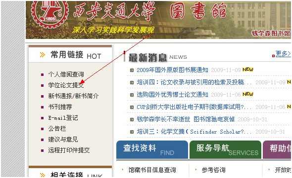 学院学位分委会审核通过后打印正式论文三本(在中英文摘要和声明部分签字)。6月14日,以系所为单位,交每人两本论文交至学院教务办公室,一本交至学校图书馆同时一并提交论文电子版至//www.lib.maodubbs.net/(点击红色箭头所指处,填写相关信息并上传论文电子版)