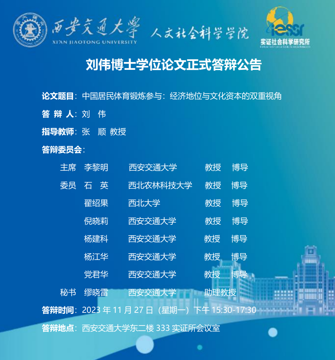 刘伟博士学位论文正式答辩公告
