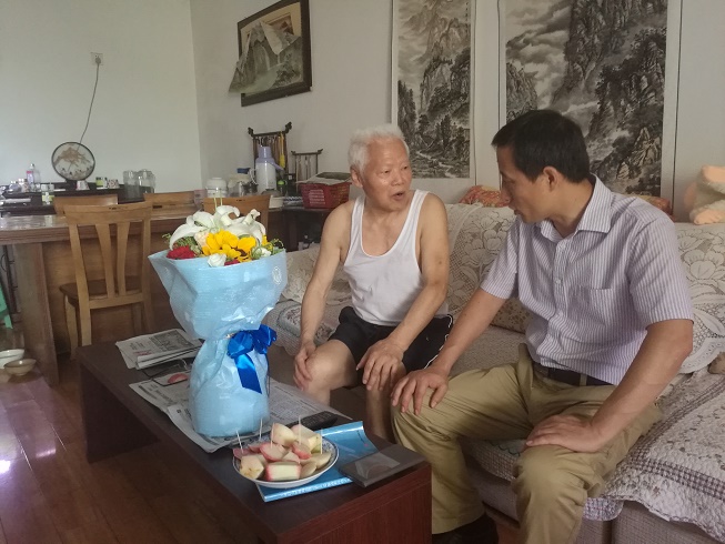 走访的院领导和同志向离休老干部和老党员转达了学校、学院党委的亲切问候,为他们送上了鲜花和慰问金。看到老同志们精神矍铄、生活安排的丰富多彩,大家都感到由衷的高兴。走访过程中,院领导向老干部、老党员重点介绍了学校、学院近半年来的发展变化,并相互交流了学习习总书记"七一"讲话的体会和认识。