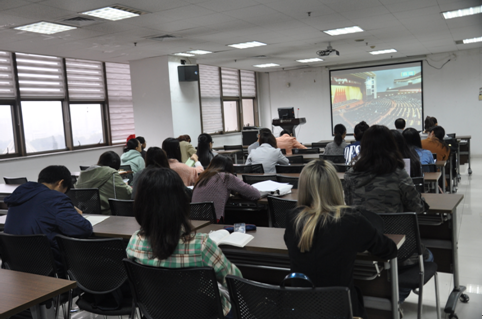 党委书记马晓彬老师、副书记李重老师,辅导员于媛芳老师,及行政党支部的成员与大家共同观看。