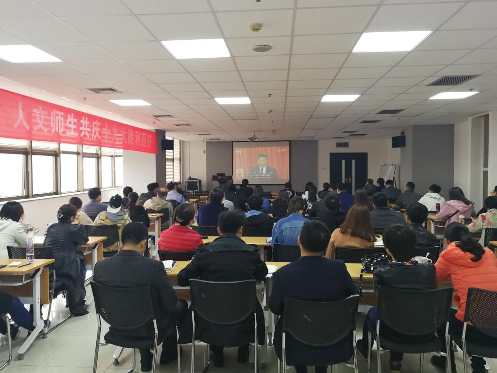 中文系党支部组织委员吴小侠在观看到大会一开始向毛泽东、周恩来等老一辈党的领导人默哀致敬的场面,内心十分感动:“这充分说明我党不忘根本不忘初心继往开来的精神;看到出席大会的老一辈领导人,会想起过去他们领导我党我军我国人民改革开放、不断进取,方能有今天中国的发展和成就,内心对他们产生了深深的敬意。自党的18大以来,全党同志团结在习主席为首的党中央周围,同心同德,在各个领域都取得了显著成绩。生逢盛世,我们既感到骄傲幸福,又倍感责任重大。我们要在自己的岗位上尽自己最大的努力,为社会主义的文化建设事业做出自己的贡献!”