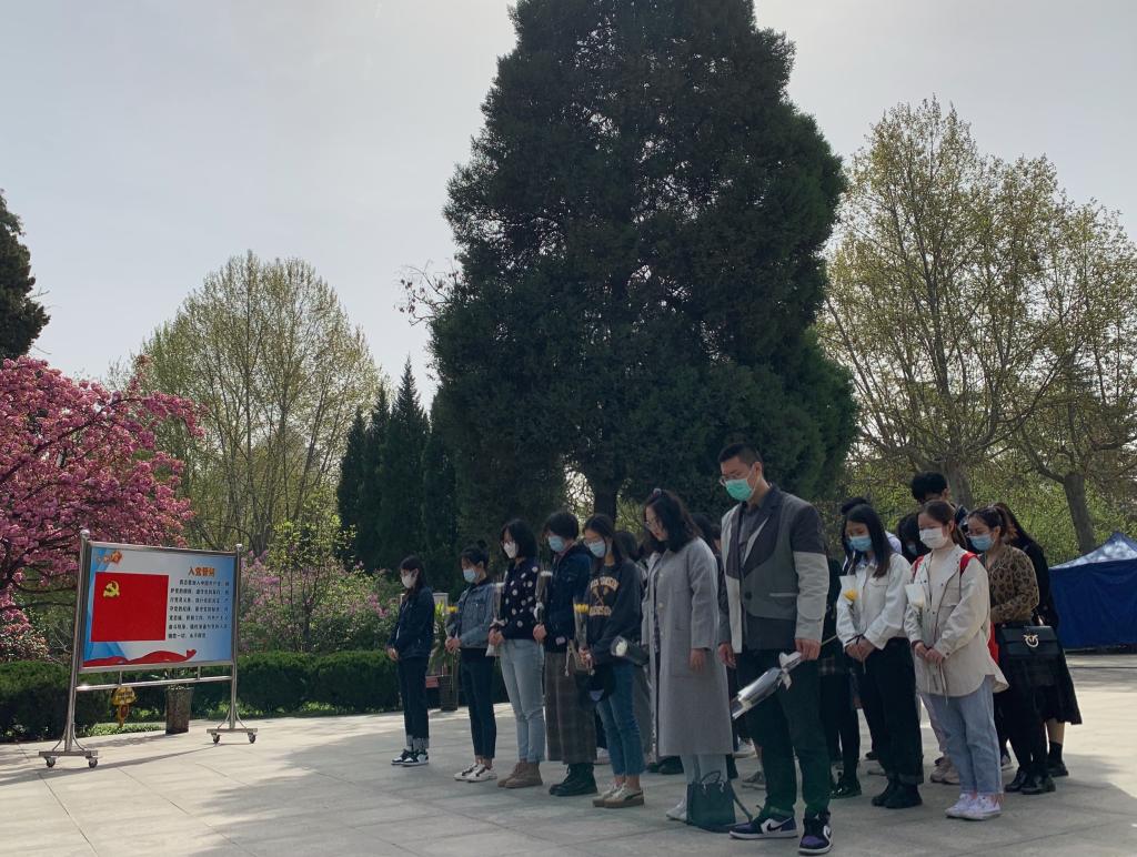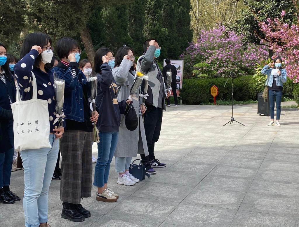 全体成员在烈士广场默哀三分钟,怀着无比崇敬的心情向烈士敬献鲜花,表达无尽的景仰和追思。