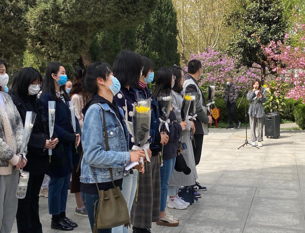 党支部书记邹铭聪向大家介绍了西安烈士陵园的基本情况,说明了此次活动的主要目的和意义。她谈到,2021年是中国共产党百年华诞,无数共产党人曾经的奋斗身影还历历在目,扫墓祭祖,缅怀先烈,是中华民族的传统习俗。我们作为新一代青年要继承先辈遗志,传承红色基因,弘扬爱国主义精神。