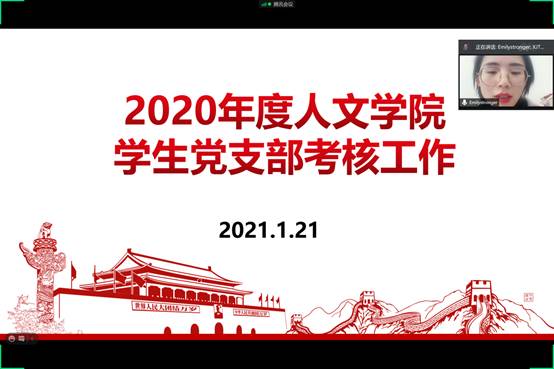 为做好2020年度学院学生党支部考核工作,进一步推动全院凝心聚气、加快高质量发展步伐,人文社会科学学院于1月21日下午在线上会议平台开展了2020年度学生党支部书记述职答辩会。学院党委副书记王劲、辅导员闫潇与兼职辅导员出席会议,各学生党支部书记与支委参加了本次述职答辩会。