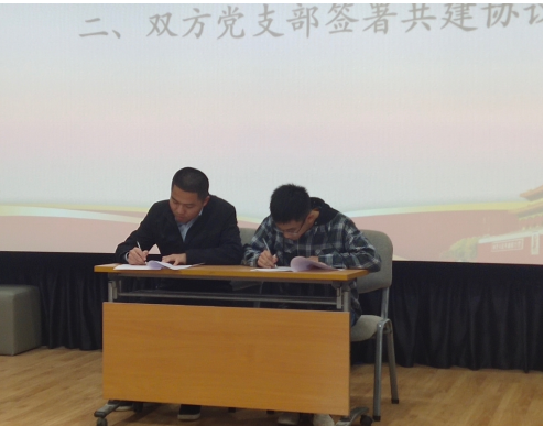 硕0115和0116党支部书记倪蒙与南洋书院学生第二党支部书记毛文渊签署支部共建协议,以后将采取联合集中学习、联合开展党课及实践教育活动等形式,交流党建工作经验,共享党建工作信息,共同加强支部的政治建设、纪律建设、组织建设。