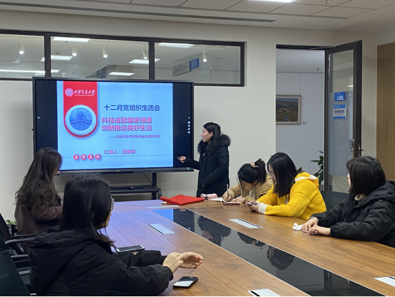 硕0114和0117党支部开展了“科技成就国家强盛,创新推动美好生活”主题生活会,会议由党支部书记邹铭聪主持,传达学习了全国和学校研究生教育会议精神,张菲菲带领大家了解了2020年中国创新成绩单,邓倩倩带领大家学习了习近平总书记有关自主创新讲话精神,支部同学互相交流学习。