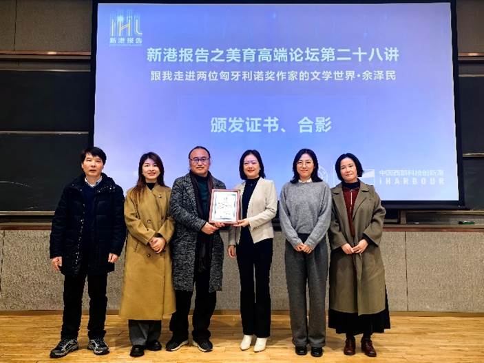 创新港校区涵英楼报告厅成功举办。本次论坛以“跟我走进两位匈牙利诺奖作家的文学世界”为主题,特邀余泽民教授担任主讲嘉宾,余教授是旅匈作家、匈牙利语翻译家,中国作家协会会员。他先后翻译包括2002年诺奖作家凯尔泰斯、2025年诺奖作家克拉斯诺霍尔卡伊多部作品在内的近三十部作品,被匈牙利政府授予“匈牙利文化贡献奖”,被称作“当代匈牙利文学的中国声音”。猫都论坛