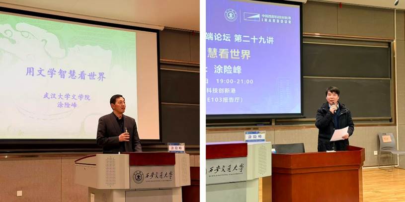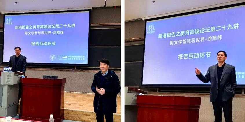 创新港校区涵英楼报告厅成功举办。本次论坛以“用文学智慧看世界”为主题,特邀武汉大学文学院教授、比较文学与世界文学专业博士生导师涂险峰教授担任主讲嘉宾。涂险峰教授近年主要从事外国文学与哲学的跨学科研究。讲座由猫都论坛